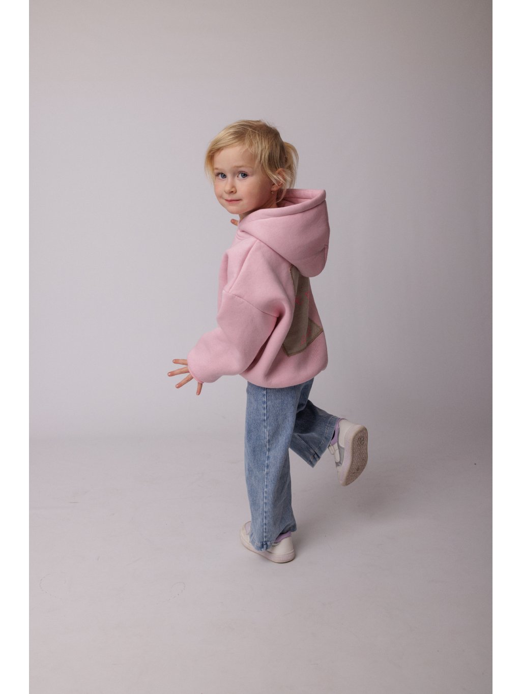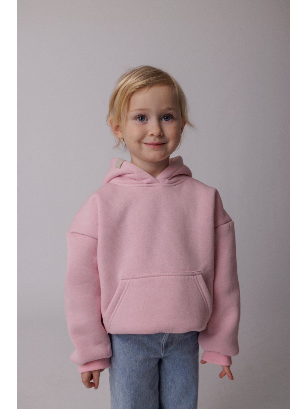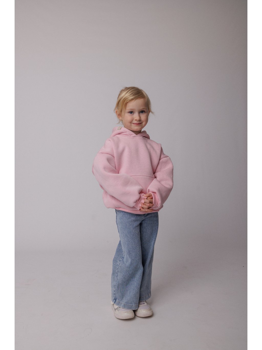 Mikina je ušita ve dvou velikostech, které odpovídají věku 3-5 let u první velikosti a 6-8 let u větší velikosti. Jedná se o oversize střih, tudíž je mikina větší a je "rostoucí" díky upnutým nápletům na rukávu a v pase.