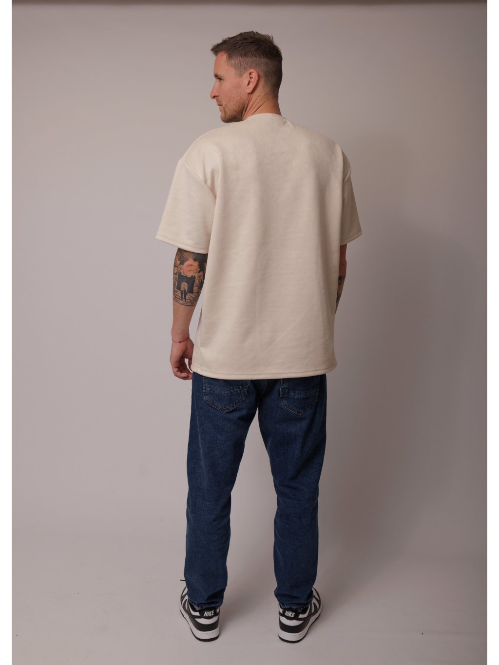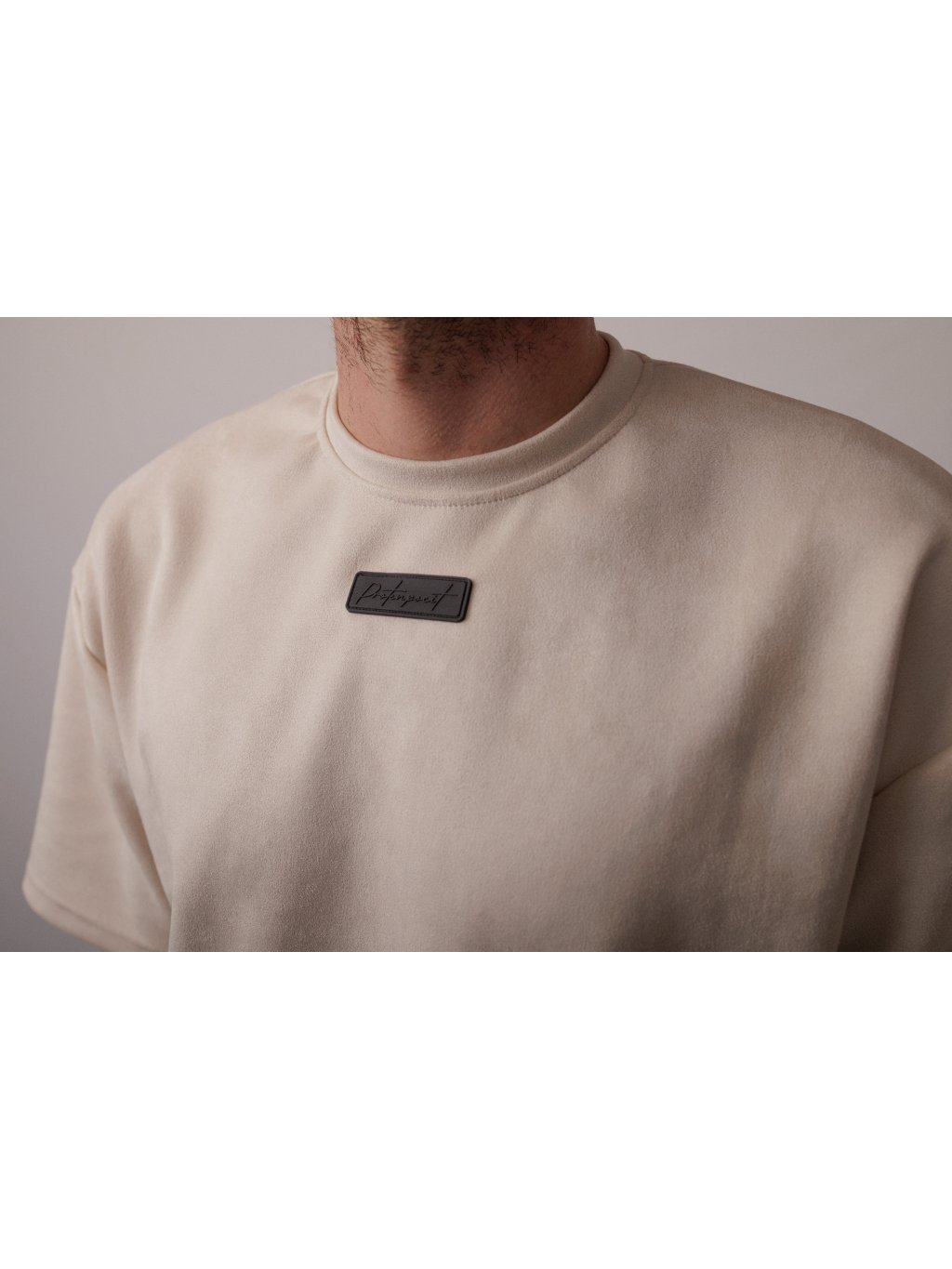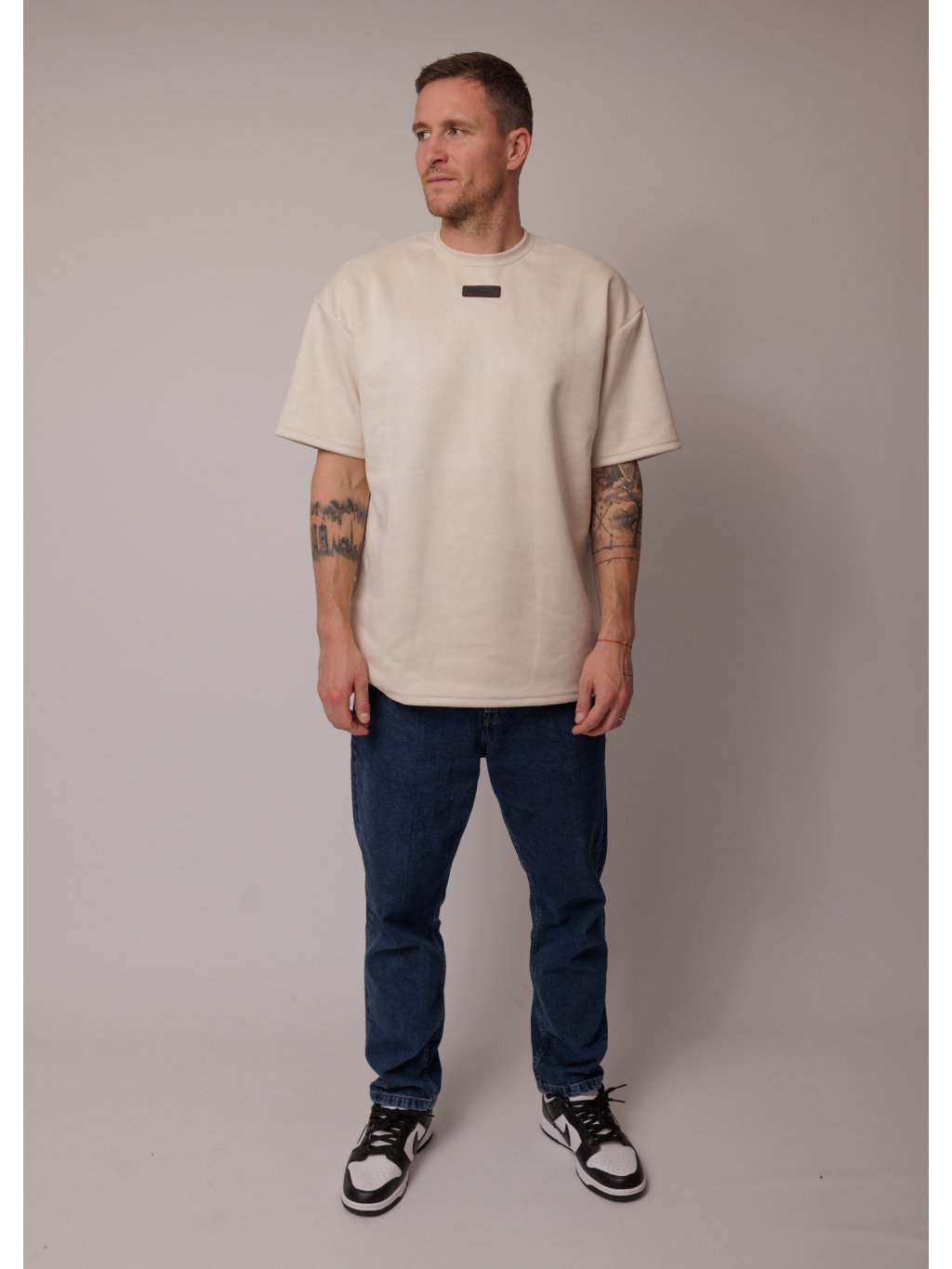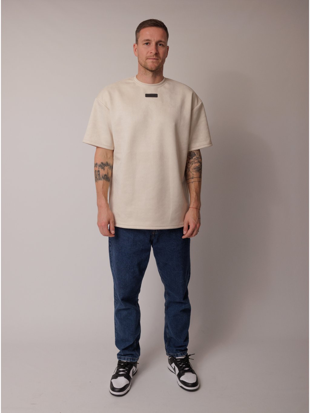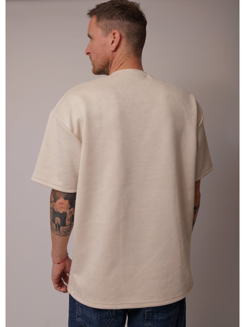 Tričko je ušito v rovném prodlouženém střihu z látky scuba semiš s vysokou gramáží v krémové a černé barvě. Minimalistický nápis Protenpocit na gumovém štítku na přední straně trička, to je jediné, co tričko obsahuje. Na zádech už není našita naše dekorační bavlna, “pytlovina”, proto je tričko velmi jednoduché a vynikne prémiová látka a oversize střih. Tričko se hodí na každodenní nošení do práce ale i do akce.